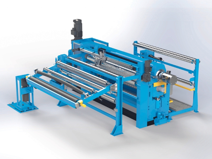The width can be selected manually by handwheel or by an operator panel through a motor with an encoder managed by a PLC.
